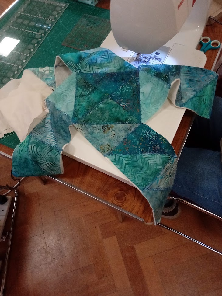 Beartown P’s and Q’s and Montague Patchers from Sale have a long history of exchanging “meet the neighbours” evenings. In February, several Beartown members took dozens of quilts and quilted items to show to the members at Montague Patchers, then at the end of March, six Sale members reciprocated and visited Beartown with a large variety of their quilts.