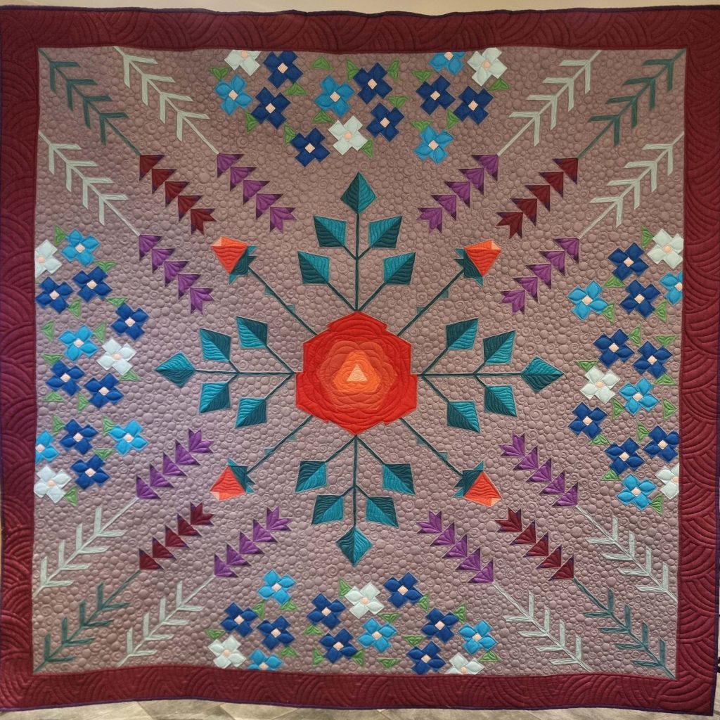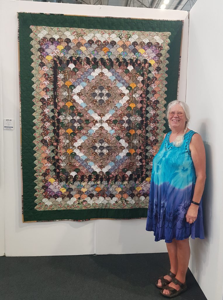 Frances Woodgate entered her “Flora Opulence” in the Two person Quilt category and was awarded 3rd place. She thanked Caitriona for her beautiful long arm quilting.